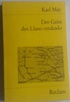 Der Geist des Llano estakado. Herausgegeben (mit umfangreichen Anmerkungen, Nachwort und Werkübersicht) von Bernhard Kosciuszko. Stuttgart 1984, Reclam (RUB 8235). 352 S., 2 Faksimile-Seiten aus der Original-Buchausgabe. Kart., Umschlagbild: Kartenskizze vom Llano estakado, kl.8°, tadellos erhalten. ISBN: 3-15-008235-8 |