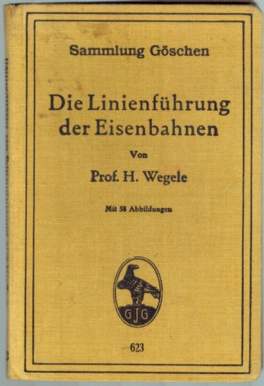 Die Linienführung der Eisenbahnen. Zweite Auflage. Mit 58 Abbildungen. [= Sammlung Göschen 623]. Berlin - Leipzig, Walter de Gruyter & Co., 1923. Original-Leinwand; kl. 8°; (4) 110 (2) Seiten. Einband wenig fleckig; insgesamt gutes Exemplar.