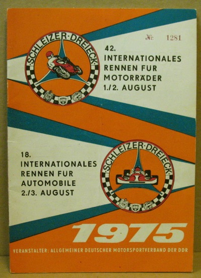42. Internationales Rennen für Motorräder, 1./2. August. 18. Internationales Rennen für Automobile, 2./3. August 1975 1975. 8°; 32 Seiten mit Abbildungen;. hinterer Einbanddeckel schmutzig, Einband geknickt Veranstaltungsprogramm.