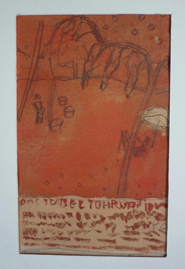 "Der Apfelbaum und der Künstler". Gouache über Bleistift. 1938. Bildgrösse: 11,5x7,5 cm - Blattgrösse: 14x10 cm. Unten rechts mit Bleistift monogramiert "CA". In Glasrahmen. "Skizze zur Lithographie zu Amiets 70. Geburtstag, 1938". Abgebildet in: Georg Mauner; Cuno Amiet Die "Obsternten" von 1912, Verlag Scheidegger & Spiess, Seite 100. "Zusäzlich zu den Obsternten-Gemälden von 1912 hat der Apfel oder Apfelbaum Amiet zeitlebens beschäftigt und er hat seine Lieblingsfrucht in vielen Zeichnungen und Gemälden zum Ausdruck gebracht".