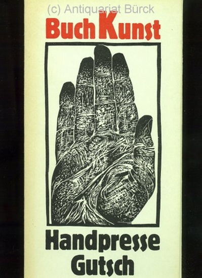 Buch Kunst. Handpresse Gutsch. Gesamtkatalog. Die lieferbaren Bücher 1988 /1989. Berlin: Galerie und Handpresse Gutsch. 1988. Quart, 34,5 x 16,5 c. (aus Raucherhaushalt, deshalb mit dezentem Tabakgeruch, sonst sehr gut erhalten). Mehr als ein anspruchsvoll gestalteter Verlagskatalog! Beiliegend eine originalgraphische Neujahrskarte (Linolschnitt?) numeriert und signiert von Herbert Gutsch.
