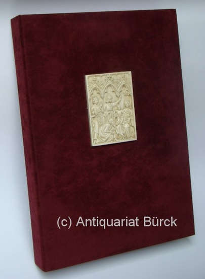 Das festliche Jahr. Große Buchmalerei des Mittelalters. 10 Faksimiles unter Passepartout in einer Samtkassette mit wissenschaftlichem Beiheft (so vollständig). Exklusivausgabe für Coron. Stuttgart: Verlag Müller und Schindler. (1988). Folio, 45 x 31 x 7 cm. (tadelloses Exemplar). Exemplar 41 der auf 1495 Exemplare beschränkten einmaligen Auflage. Die Reproduktionen wurden mit 23 1/2 Karat Echtgold hergestellt. Folgende 10 Faksimile-Blätter unter Passepartout sind in der Schmuckkassette vorhanden: 1. Das Marienleben (Stundenbuch des Herzogs von Bedford. Paris 1423/1430). - 2. Pfingsten (Drogo-Sakramentar, Metz, zwischen 850 und 855). - 3. Der Heilige Martin (Mariegola der Schule von San Martino, Venedig 1362). - 4. Christi Himmelfahrt (Stundenbuch des Etienne Chevalier, Frankreich, Mitte 15. Jahrhundert). - 5. Epiphanias (Missale des Erzbischofs Sbinko von Hasenburg, Prag 1409). - 6. Ostern (Drogo-Sakramentar, Metz, zwischen 850 und 855). - 7. Die Karwoche, Einzug in Jerusalem (Ethelwold-Benedictionale, Winchester, um 980). - 8. Die Heiligen Drei Könige (Les tres Riches Heures du Duc de Berry, Frankreich 1411/1416). - 9. Weihnachten (Ethelwold-Benediktionale, Winchester, um 980). - 10. Die Verkündigung am Brunnen (Cotton Psalter, Deutschland, Mitte 12. Jahrhundert). - Die sehr gut gelungene Kopie der Elfenbeinschnitzerei auf dem Deckel der Kassette stellt die Anbetung der Hl. Drei Könige dar. Das Original ist wahrscheinlich um die Mitte des 14.Jahrhunderts in einer Pariser Werkstatt entstanden. - Weitere Abbildungen zu unserem Angebot finden Sie auf unserer Homepage.
