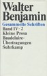 Kleine Prosa. Baudelaire-Übertragungen. Herausgegeben von Tillman Rexroth. Frankfurt am Main, Suhrkamp Verlag, 1991. 8°. 20,5 x 14 cm. Seiten 610-1107. Original-Leinenband mit Original-Schutzumschlag. ISBN: 3518573098 (= Walter Benjamin. Gesammelte Schriften, Band 4.2). |