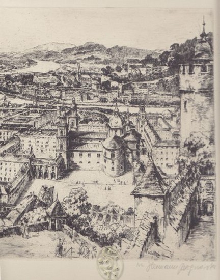 Salzburg _. Orig.-Radierung Blattgröße: 39 x 47 cm., Bildausschn.: 24 x 32 cm. In sehr gutem Zustand.