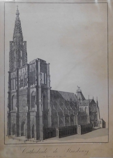 Ansicht des Münsters von Straßburg. Strasbourg, Kupferstich von F. J. Oberthür bei J. J. Guttermann, 1818. 70,5x51 cm. Gravure sur cuivre de F. J. Oberthür chez Guttermann, Strasbourg, 1818, 70,5x51 cm.