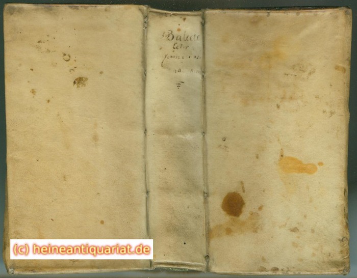 LETTRES FAMILIERES DE M. DE BALZAC, A M. CHAPELAIN. [Druckermarke "Eremit" mit dem "Non-solus-Emblem, Rahir "M. 12"]. A LEIDEN, Chez Jean Elsevier, MDCLVI (1656). 333 Seiten, 1 (weißes) Blatt, 1 (weißes) Blatt. Mit fünf durchgezogenen Pergamentbändern gehefteter Pergamentband der Zeit mit seitlich überstehenden Schutzkanten. (13,5 x 83 cm, bzw. 12,9 x 7,3 cm; Buchblock: 2,4 cm) 12°. - Nicht nur Willems und Berghman unbekannt gebliebene Variante ! - Bérard S. 138 ("Une réimpression de ce volume a été donnée en 1661, à Amsterdam, par Louis et Daniel Elzevier. Elle ne contient rien de plus que l'édition originale, et elle est moins belle. L'édition de 1656 a 333 pages et la suivante 332."). Pieters 46 auf S. 169. Vergl. Willems 773 ("Marque: le Solitaire. 333 p. - 1 f. blanc. Réimprimé par les Elzevier d'Amsterdam en 1661."). Brunet (Millot) S. 59 ("Cette édition possède la 3e sirène et le buffle nouveau, créés après la séparation de Jean et de Daniel."). Vergl. Winterthur 59 (unklar welche Variante). Vergl. Brunet V, col. 1715. Goldsmid I, 25. Rahir 780 ("La lettre M a la p. 19 a été changée et mesure 14 mm. de hauteur (B. 100), le reste du volume est semblable."). Berghman 1413. Copinger 190 ("Letter M 14 mm."). Vergl. Montaran 603 [Bestandteil eines Balzac-Konvolutes]. Drouot (1946) 171. Vergl. Drouot (1987) 46 (unklar welche Variante). Vergl. Phiebig 236 [Bestandteil eines Konvolutes, unklar welche Variante dort vorhanden war.]. EHC 12.1656.Bal.00 [Unklar, welche Variate sich dort befindet. Man kann sich nicht zwischen Copinger 189 und 190 entscheiden). Weddigen 036. Der zeitgenössische Pergamentband ist etwas berieben und fleckig, besonders auf dem vorderen Deckel, der handschriftliche Rückentitel später erneuert. Das vordere Innengelenk angebrochen. Innen stellenweise leicht gebräunt. Mit der gedruckten Widmung für den "MONSEIGNEUR LE MARQUIS DE MONTAVZIER", das ist Charles de Montausier, im Auftrag Balzacs, der dies testamentarisch so bestimmt hatte, durch den Testamentsvollstrecker, den Angoulêmer Erzdiakon Claude Girard. Der Marquis, später Herzog besaß auf seinem Schloß eine umfangreiche Bibliothek. Rahir beschreibt als Erster den Unterschied zwischen den beiden Varianten, die eine (Rahir 778) ziert auf Seite 19 eine Schmuckinitiale "M", die 14 mm in der Höhe mißt und von Berghman in den "Études" als No. 103 abgebildet wird, unter Rahir 779 beschreibt er ein weiteres Exemplar dieser Variante, allerdings unbeschnitten und 141 mm hoch, unter Rahir 780 findet sich dann schließlich unsere Variante, deren ausgetauschte Schmuckinitiale nun 14 mm in der Höhe mißt und in Berghmans "Études" als No. 100 abgebildet wird. Neben der Druckermarke findet sich die bereits beschriebene Schmuckinitiale "M" (Berghman 103) auf Seite 19, auf Blatt 2 sogar in noch etwas größerer Variante (16 mm), sowie eine Variante der Sirene (Rahir 23). Auf Seite 19 der "Büffelkopf" in der Variante Rahir 19, wiederholt auf Seite 104, 150 und 206, dort auch jeweils erneut eine Schmuckinitiale "M", diesmal in üblicher Größe. Die Vignette Rahir 51 wurde zweimal benutzt, zunächst auf Seite 205 und als Schlußvignette auf Seite 333. Provenienz: Adelsbesitz, Hintze, Handel, Weddigen Handschriftlicher Besitzeintrag des "Johann Aug. Hintze emi ex Biblioth. Ingelmanni [unleserlich]" auf dem vorderen fliegenden Vorsatz, auf dem vorderen Innendeckel in seiner Handschrift Angaben zum Leben Balzacs. Dort auch ein Wappenexlibris und die handschriftlichen bibliographischen Angaben Weddigens. Auf dem vorderen fliegenden Vorsatz bibliographische Vermerke einer weiteren Hand, möglicherweise eines Händlers. * Bitte fordern Sie bei Interesse unsere umfangreichen Anmerkungen an. *.