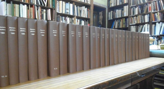 Eisenbahn - Journal 1984 bis 2010. Lückenlose Folge von 27 Büchern, Jahrgang 10, 1984 - Jahrgang 36, 2010. Hermann Merker Verlag / Verlagsgruppe Bahn. Fürstenfeldbruck 1984 - 2010. 29,8 x 20,5 cm. Uniforme, braune Leinenbände mit silbergeprägten Rückentiteln. Eingebunden jeweils 12 Hefte, komplett mit farbigen Titelblättern und Inhaltsverzeichnissen nach Journal-Ausgaben bzw. nach Sachgebieten sortiert. Ca. 95 - 120 Seiten pro Ausgabe, reichhaltig farbig bebildert (Fotos, teilweise Zeichnungen), Text teilweise mehrspaltig gesetzt. Die Bände außen und innen sauber, die Bindungen fest. Insgesamt guter Zustand. Mit Rubriken wie Dampflokomotiven, Elektroloks, Diesellokomotiven, Typenskizzen, Reise- und Güterzüge, Streckenberichte, Eisenbahngeschichte, Erinnerungen // Modellbahnen-Ausstellungen, Bauanleitungen und Bauvorschläge, Int. Modellbauwettbewerbe // Versand erfolgt in 4 Packstücken zu insgesamt 30 Euro Porto (Inlandsversand), EU-Versand zu 70 Euro, Auslandversand bitte erfragen. AntGriUnt.