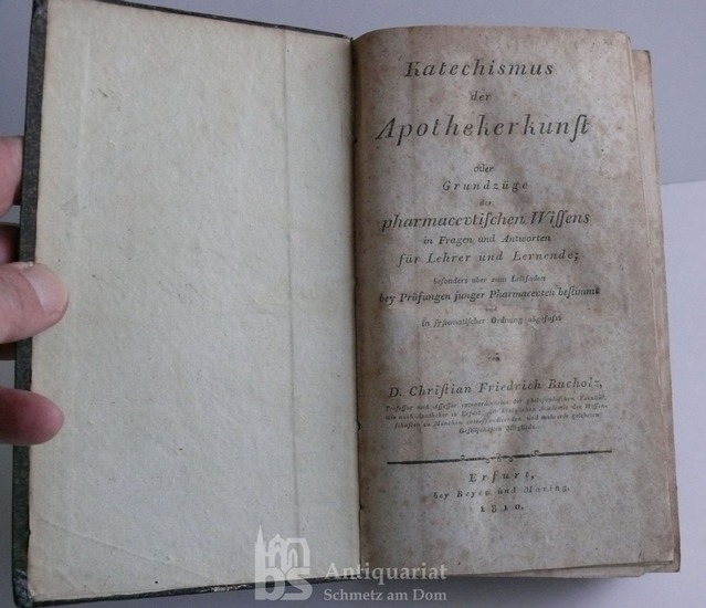 Katechismus der Apothekerkunst oder Grundzüge des pharmaceutischen Wissens in Fragen und Antworten [...]. Erfurt, Beyer und Maring 1810. XII, 852 S. Restaurierter Pappband der Zeit mit Rückenschild. Rücken mit schwacher Knickspur, Kapitale ergänzt. Durchgehend braunfleckig. Erste Ausgabe. - Poggendorff I.329. Hein/Schwarz I.90: "Durch seinen 'Katechismus der Apotheker-Kunst' 1810 [...] hat B. sich besonders um die wissenschaftliche Ausbildung der Pharmazeuten verdient gemacht." Vgl. auch Hamberger/Meusel XIII.189f. und XXII/1.420 (mit der 2. Auflage des Werks).