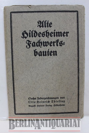 Alte Hildesheimer Fachwerksbauten. Hildesheim, Deiters, um 1925. 13,8 x 9,1 cm. 6 Federzeichnungen. Zeichnungen in OriginalMappe. Pfeilerhaus (Außenansicht), Wiener Hof, Wedekindhaus, Pfeilerhaus (Innenhof), Domschenke, Knochenhaueramtshaus. - Mappe mit leichten Gebrauchsspuren, Postkarten gut. Siehe Photo.