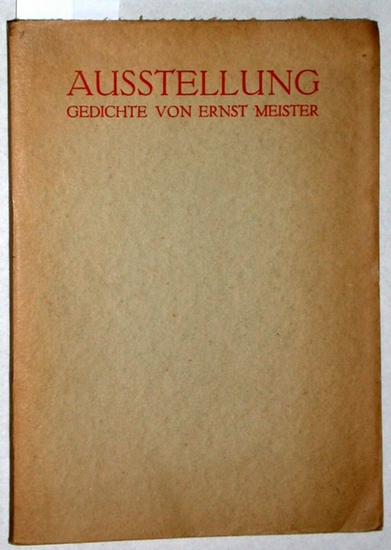 Ausstellung. Gedichte von Ernst Meister. Marburg an der Lahn: Verlag der Marburger Flugblätter. 1932. 64 S.,. Zwei sehr schwache Knickspuren - am Vorderdeckel in unterer Ecke und am Hinterdeckel in oberer Ecke; ansonsten ohne Makel. Dieses äußerst seltene Werk ist innen wie außen gut, fast sehr gut erhalten.