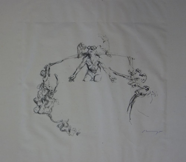 Arabische Liebeslieder. "Wen Gott verderben will." (Söhn Nr. 487). Abzug vor dem Text. Original-Lithographie auf China, 1923. 13,5x16,5 cm. Handschriftlich signiert. *Die komplette Mappe mit Text erschien in einer Auflage von 20 Exemplaren. Hier einer der wenigen signierten Vorabzüge noch ohne Text. (etwas knittrig).
