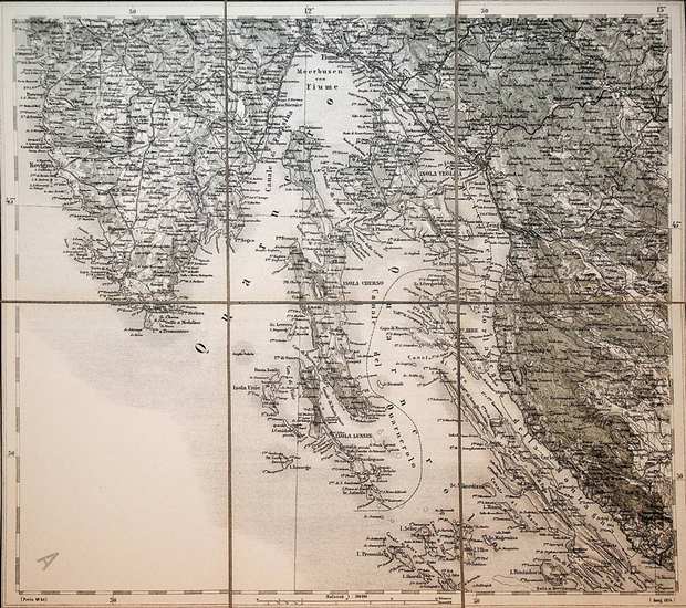 POLA - [Blatt H. 10 der General-Karte von Central Europa 1:300000 1873-1876] Wien, Kaiserlich-K?nigliches Milit?r-Geographisches Institut, 1874. Heliogravure in Kupfer vervielf?ltigt durch Umdruck vom Steine., Blatt ca. 51x 45 cm, Kartenbild; ca. 48 x 42 zu 6 Segmenten auf Leinen aufgezogen; Zustand: sehr gut. Generalkarte von Zentraleuropa / Generalcarte von Centraleuropa / 1:300 000 / 1 : 300. 000. Die Generalkarte von Central Europa erschien in den Jahren 1873 bis 1876, sie ist das Werk von Joseph Ritter von Scheda (1815-1888) Nach seiner milit?rischen Ausbildung in Graz, wurde recht bald seine besonderen F?higkeiten f?r das Kartenzeichnen erkannt. Ab 1842 begann seine steile Karriere beim Wiener Milit?rgeographischen Institut. Zun?chst Leiter der Lithographischen Abteilung des Wiener Milit?rgeographischen Instituts sp?ter zeitweise auch der Kupferstichabteilung. War er ab 1869 Chef der Abteilungen Topographie, Lithographie und Kupferstich somit der gesamte Bereich der kartographischen Arbeiten des Instituts. Sein unerm?dliches Bestreben um Verbesserung der technischen und inhaltlichen Qualit?t der Karten trug er wesentlich zur Begr?ndung des Weltrufs des Wiener Milit?rgeographischen Instituts bei. Der hier angebotenen Karte gingen folgende Arbeiten voraus: 1845-47 General-Karte von Europa in 25 Bl?ttern Lithographie, General-Karte des ?sterreich. Kaiserstaates mit einem grossen Theile der angr?nzenden L?nder 20 Blatt in Kupferstich 1: 576 000, in der 2. Auflage 1870-1871 General-Karte von Central-Europa in 47 Bl?ttern, wobei diese Kartenwerke nach eigenen Zeichnungen Schedas im Institut auf seine Kosten produziert wurden. Wegen der hervorragenden Qualit?t wurde konnte die 1 : 576 000 Karte auf dem Ma?stab 1 : 300 000 vergr??ert werden, wodurch mit einem Schlage 207 Bl?tter der Generalkarte vorlagen. Vgl. ADB 53, S. 737 f. / NDB, 22, S. 598 f. / ?BL 10, S. 56 f. / Die Amtliche Kartographie ?sterreichs Wien 1970, S. 28, dieses Kartenwerk blieb bis zu der Generalkarte von Mitteleuropa 1: 200 000 Wie, k. k. milit?rg. Inst 1889-1912 der Standard.