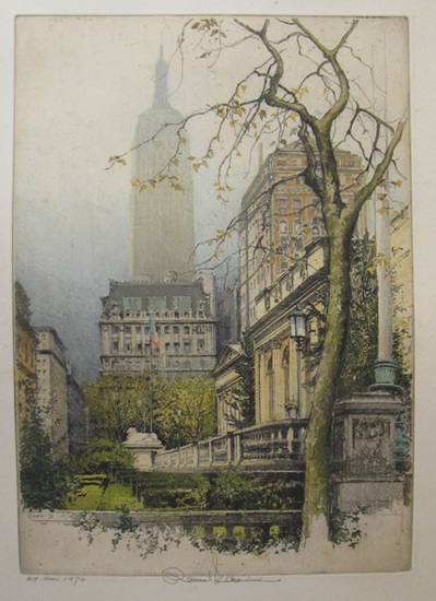New York, Empire State Building _. original Farbradierung, signiert ,Platte ca. 49,5 cm x 35 cm; Zustand: sehr gut- gut.