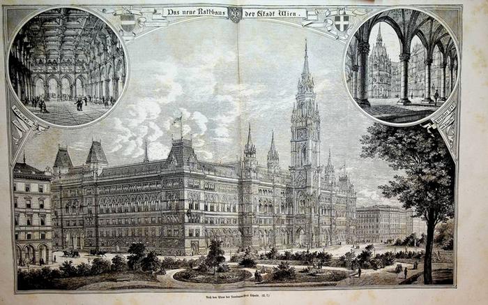 WIEN I, Rathaus, Ansicht ca. 1872 ca. 1872. original Xylographie, Bild ca. 31 x 48 cm.