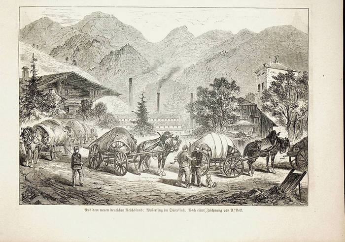 HUSSEREN-WESSERLING, Wesserling, France (Elsass), vue, Ansicht ca. 1872 ca. 1872. original Xylographie, Darstellung ca. 16 x 23 cm. Antique Print, antike Grafik.