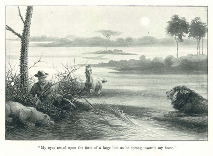 In Haunts of Wild Game. A Hunter-Naturalist's Wanderings from Kahlamba to Libombo. Edinburgh u. London, William Blackwood and Sons 1896. Gr.-8°. XVI, 576 S. Mit Porträt-Front, 15 ganzseit. Abb. auf Taf., 24 Textillustrationen und einer gef., farb. Karte. OLeinenbd. m. braungedr. Deckelbild, schwarzgepr. Deckel- u. goldgepr. Rü.titel. Bindung geringf. gelockert, Einbd. u. Schnitt angestaubt, Ecken bestoßen, Unterkanten berieben, tls. stockfleckig u. eselsohrig, hint. Vorsatz m. Signaturen v. alter Hd. "EA. ""One of the classics of African sport, this book describes the author's hunting experiences in Portuguese East Africa and the eastern Transvaal. He relates hunting in the rugged Kloof country after bushbuck, kudu, and leopard. In the Khalamba foothills, he bagged buffalo .. He also hunted sable, giraffe, and wildebeest. Two long chapters on lion hunting are also featured. Complementing the text are excellent illustrations by Charles Whymper"" (Czech, African, S. 89).".
