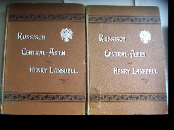 Russisch-Central-Asien nebst Kuldscha, Buchara, Chiwa und Merw. Deutsche Ausgabe, bearb. durch H. v. Wobeser. 3 Bde. in 2. Leipzig, Hirt & Sohn, 1885. M. 1 mont. Fotogr., 4 getönten Doppeltaf., 1 gef. farb. Kte. u. 65 xylograph. (teils ganzs.) Abb. 980 S. (durchgeh. pag.). OPpbde. m. Rücken- u.- Deckeltitel. Einbde. bestoßen. Rücken teils leicht eingerissen u. m. Sign. Buchbl. teils leicht gelockert. M. zahlr. St. u. Sign. (Bbil.-Ex.).Kte. m. kl. Einriss. Erste deutsche Ausgabe des Berichts einer Reise ins russische Turkestan, deren ursprünglicher Zweck in der "Verteilung von Bibeln und Traktätchen unter den Verbannten und den halbzivilisierten Völkern des innern Asiens" bestand, da Reverend Henry Lansdell als Amateur-Missionar die Welt bereiste. Durch seine Freunde umgestimmt, ließ er die Druckwerke unverteilt und sammelte ethnographische Kenntnisse, wobei er den Schwerpunkt auf Geschichte, Religion, Sprachwissenschaft, Volkswirtschaft und die Erkundung von Strafanstalten legte. Die naturwissenschaftlichen Ergebnisse der Reise erschienen ebenfalls 1885 separat, sie enthielten die Erkenntnisse über Fauna und Flora des russischen Turkestan sowie eine Bibliographie des russischen Zentralasien, der hier, wie fast immer, nicht vorliegt. - Einzeln auf Anfrage.