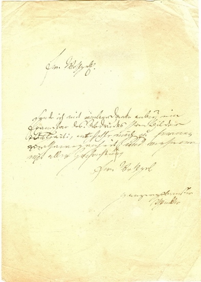 Eigenh. Brief mit U. (?Winkler?). O. O. u. D. ? S. 4to. An einen namentlich nicht genannten Adressaten: ?Ew. Wohlgeb. sende ich mit vielem Danke anbey ein Exemplar des Abdruckes Ihrer Bilder aus Tahiti [...]?. ? Vielfältig beschäftigt, war Theodor Hell u.a. Schriftleiter des ?Generalgouvernementsblattes?, Theaterintendant, Regisseur der italienischen Oper, Vizedirektor des Dresdner Hoftheaters, Herausgeber der Taschenbücher ?Dramatisches Vergißmeinicht?, ?Penelope?, ?Komus? und des ?Weimarischen Dramatischen Taschenbuchs? sowie der berühmten ?Abendzeitung?; daneben war er als Erzähler und Übersetzer tätig. ? Papierbedingt etwas gebräunt; leicht angestaubt; ohne die erwähnte Beilage.