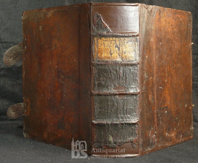 Chirurgie, in welcher alles, was zur Wund-Arztney gehöret, Nach der neuesten und besten Art, gründlich abgehandelt, und In vielen Kupffer-Tafeln die neuerfundenen und dienlichsten Instrumenten, Nebst den bequemsten Handgriffen der Chirugischen Operationen und Bandagen deutlich vorgestellet werden. [3 Teile in 1 Band]. Mit XXVI [recte 29] Kupfertafeln, davon 25 gefaltet. Frankfurt und Augsburg Bey Gabriel Nicolaus Raspe, 1739. Kl.-4°. [8 statt 10] Bl., 896 S., [12] Bl. Leder der Zeit mit Rückenschild. Einband restauriert, größere Lederfehlstellen wie auch die Lederschließen ergänzt. Besitzvermerk von 1768 am Spiegel. Ohne Portrait und Titel (diese in etwas verkleinerter und teils undeutlicher Farbkopie beiliegend). Durchgehend stock- oder braunfleckig. Die ersten Bl. etwas wasserrandig. Teils größerer Braunfleck im Rand. Die Tafeln teils braunfleckig und im Rand beschädigt (teils geringf. Bildverlust), 3 Tafeln auch mit größeren Ausrissen (Bildverlust, teils Papierergänzung). Das 1. Bl. mit Papierergänzung am Rand. Titel erschlossen. Nachdruck der 3. (Nürnberger) Ausgabe von 1731. - Neuburger/Pagel II.1.499 und 279 ('Der erste deutsche Anatom, der die Anatomie gründlich und ihrem ganzen Umfange nach bearbeitet hat, ist Heister (...). Sein anatomisches Kompendium (...) knapp aber übersichtlich angeordnet und mit Literaturhinweisen reichlichst versehen, so dass es zum beliebtesten Handbuch während der ersten Hälfte des 18. Jahrhunderts und darüber hinaus geworden ist (...)'. Vgl. auch Garrison/Morton 5576. Hirsch/Hübotter III.141: "Er ist der Begründer der wissenschftlichen Chirurgie in Deutschland.".