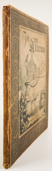 In und um Altona. Original-Aufnahmen von Hof-Photograph Wilhelm Dreesen in Flensburg. 25 Blatt it 49 malerischen Ansichten in Lichtdruck. - Altona:, Schlüter, [1894]. 1 Bl. (Text) und 25 Tafeln lose in illustrierter OLn.-Mappe, 33,5 x 24,5 cm. Vollständig. Mit allen 25 Lichtdrucktafeln. - Motive u.a.: Palmaille; Bahnhof (Elbbergseite); Kunst- und Gewerbehalle; Königliches Gymnasium Christianeum; Realgymnasium und Realschule (Königstraße); Feuerwache (Mörkenstraße); Große Bergstraße; Königstraße (mittlerer Teil); Königstraße mit dem Helgoland-Denkmal; Bahnhof Holstenstraße; Quäkerberg; Sandberg; Köhlbrandstreppe; Dampfschiffsbrücke; Fischmarkt; Holzhafen und Köhlbrandstreppe; Quai-Anlagen mit den Lagerschuppen; Klopstocks Grab; Wasserfall (Donner'scher Park); Schloss Neumühlen; Flottbeker Chaussee; Städtische Anlagen an der Elbe; Badestrand (Neumühlen); Rainville-Terrasse und Hafen für kleine Schiffahrt; Strandleben; Landungsbrücke; Wrack "Athabasca"; Hafen (Teufelsbrücke); bei der Rolandsmühle; Villendorf Neu-Otmarschen; Dorfteich (Othmarschen); Elbschloss-Brauerei Nienstedten; Süllberg (Blankenese) vom Bismarckstein aus; Blankenese mit Süllberg (Elbseite). - Die Mappe etwas fleckig, in den Gelenken stark rissig; die Deckelillustration mit unschönem kleinem Ausbruch. Die Tafeln meist gering angerändert. Sonst ordentliches, innen gutes Exemplar.