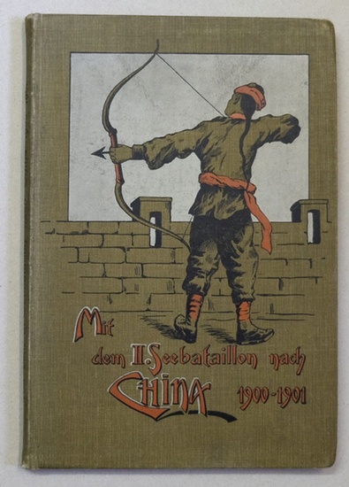 Mit dem II. Seebataillon nach China 1900 - 1901. Veröffentlicht aus Anlaß der Feier des 50jährigen Bestehens der Marine-Infanterie 1852-1902. Liebelsche Buchhandlung / Liebel, Berlin, 1902. 8°, 168 S., mit Abbildungen und Illustrationen sowie 2 gefalteten Skizzen auf Tafeln am Ende des Buches, illustrierter Original-Leinwandeinband in guter Erhaltung (leicht berieben, private Widmung von 1903. auf dem Titelblatt).