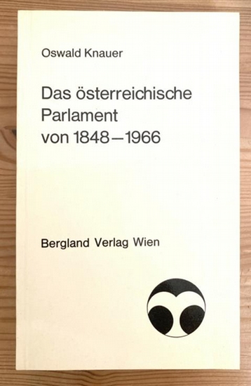Das österreichische Parlament von 1848-1966. Wien, Bergland, 1969. 316 Seiten., 7 Bl. 8° , Original Karton ( leicht berieben). Selten. - Knauer Oswald, * 15. Juni 1892 Tulln, Niederösterreich, ? 29. Juni 1967 Wien, Beamter. Knauer studierte Jus und arbeitete ab 1912 als Stenograph in der Reichratskorrespondenz. 1915 trat er in den Dienst der Stadt Wien, war in verschiedenen Dienststellen tätig, bis er 1948 zum Leiter der Magistratsabteilung 63 (Gewerbewesen) bestellt wurde (Obersenatsrat). ?Das österreichische Parlament von 1848-1966", erschien erst nach seinem Tod (1969). (Geschichtenwiki. wien.gv.at) - Guter Zustand. PC6-37.