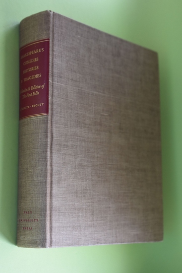 Mr. William Shakespeares Comedies, Histories, & Tragedies. A facsimile edition prepared by Helge Kökeritz. With an Introduction by Charles Tyler Prouty New Haven, Yale University Press 1954. xxix, 889 S., 29cm Leinen. 0 Zustand: Leineneinband ohne Schutzumschlag, wenig gebräunt, sehr gut --- Inhalt: The present reduced facsimile editon of Mr. William Shakespeares Comedies, Historie,& Tragedies (London1623), more commenly known as the First Folio, reproduces as faithfully and accurately as modern techniques permit the excellent copy in the possession of the Elizabethan Club of Yale University, with two paginations, the original and a new continuous. WU2-1.