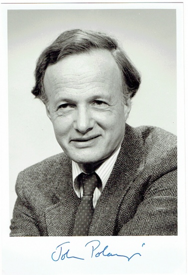 Portraitphotographie mit eigenh. Unterschrift. ohne Ort und Datum. 130 : 180 mm. Brustbild von vorn. Mit Kuvert. Polanyi erhielt 1986 zusammen mit Dudley R. Herschbach und Yuan T. Lee den Nobelpreis für Chemie ?für seine Mitwirkung betreffend der Dynamik chemischer Elementarprozesse?.