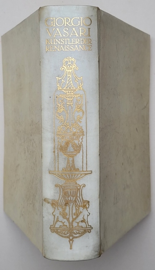 Lebensbeschreibungen der ausgezeichnetsten Maler, Bildhauer und Architekten der Renaissance. Nach Dokumenten und mündlichen Berichten dargestellt von Giorgio Vasari. Herazsgegeben von Ernst Jaffé. 1910. Julius Bard, Berlin, Erste Auflage. Mit sechzehn Bildnissen in Tonätzung. Originalpergamentband auf vier Bünden mit Rückenvergoldung und Kopfgoldschnitt. [4], 443, [1] Seiten. 17,5 : 14,5 cm.
