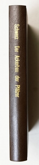 Beobachtungen über den Ackerbau der Pfälzer. Originalausgabe. Reimer, Berlin, 1816. 8°, XVI, 285 S., mit Falttafeln (nur 1 Tafel mit Abbildungen, der Rest Tabellen), moderner Efalineinband mit Rückenbeschriftung (Seiten stark gebräunt und am unteren Rand aufgehellt, Papier etwas brüchig, Titelblatt mit kleinem. Randeinriß unten) *Johann Nepomuk Hubert von Schwerz (1759-1844) (OBM).