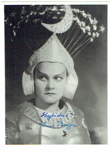 Portraitpostkarte mit eigenh. Unterschrift auf der Bildseite. o. O. u. D. 100 : 150 mm. Rollenportrait von vorn als ?Königin der Nacht?.