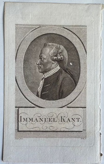 Immanuel Kant. Kupferstich von Liebe nach Lowe. Blattgröße: 19,1 x 11,7 cm. (1789). rechter weißer Rand unregelmäßig, rückseitig mit Stempel, gutes Exemplar.