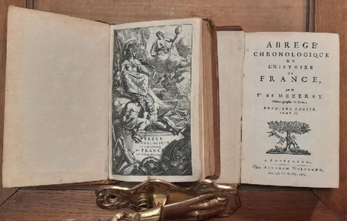 Abregé Chronologique de l'Histoire de France TOME I (1673) + Premiere Partie TOME II (1674) (divise en six tomes). Chez Abraham Wolfgang: pres de la Bourse, Amsterdam. 1673. einge Kupferstiche. 8, 414, 24 S. + 415-47 S., 38 S. 8° 2 Bände v. 6.