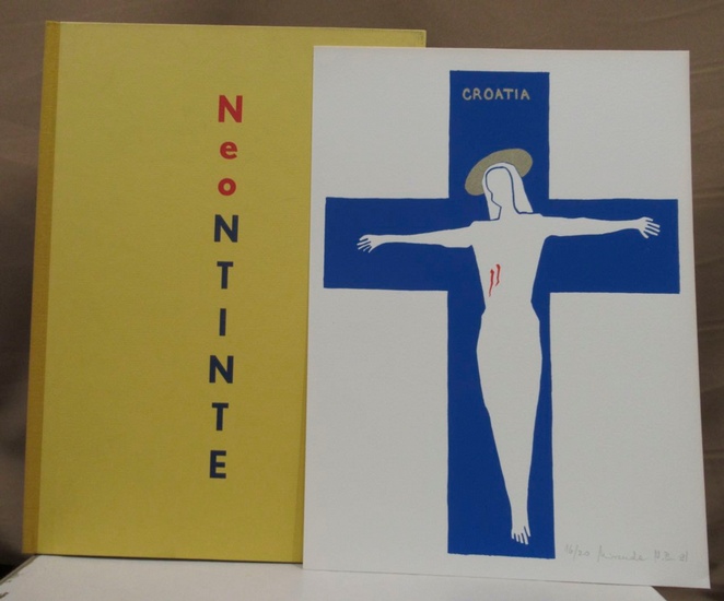 NeonTINTE. Aus dem Kroatischen von Zvonko Plepelic. Berlin, Edition Mariannenpresse 1991. 1991. 4° (ca. 32,5 x 23,5 cm), 40 ungez. S. mit 8 ganzseitigen Farbserigraphien, Orig.-Halbleinen. Erste Ausgabe.- (= 63. Veröffentlichung der Mariannenpresse).- Eins von 20 (gesamt 100) nummerierten und von der Künstlerin signierten Exemplaren der Vorzugsausgabe mit einer zusätlzichen signierten Orig.-Serigraphie. Jede Serigraphie von Blazevic signiert.