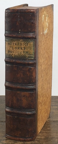 Flores Doctorum pene omnium, tam graecorum, quam latinorum qui tum in Theologia, tum in Philosopohia hactenus claruerunt, per Thomam Hybernicum, olim summa cum diligentia collecti, ac ordine alphabetico digesti cum permissu superiorum. Wien, Krauss 1760. Kupferstich mit einer Darstellung des 'guten Hirten' als Frontisp., 2 Bll., 816 S. + 4 ungez. S. + 2 Bll. 'Catalogus librorum qui propriis sumptibus prodierunt & in copia habendi sunt apud Editorem hujus libri...'(!) Halblederband der Zeit mit Rückenschild. Vorsätze fehlen. Gut erhalten.