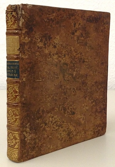 De dominio directo in alieno territorio disquisitiones recensuit, praefationem varii generis observationibus refertam et scriptores de S. R. I. territoriis variis eorum speciebus acquisitione incorporatione condominio superioritate et iurisdictione territoriali nec non servitutibus iuris publici praemisit H. G. Francke. Leipzig, Langenheim, 1743. 4to. XLIII, 84 S., 2 Bl. - Mit Beiband (s.u.). Leder d. Zeit mit reicher Rückenvergoldung u. 2 Rückenschildern (Rücken u. Vorderdeckel oben mit Wurmspuren). Beigebunden: Augustin Leyser. Meditationes de assentationibus Iure-consultorum et doctrina de domaniis. Iam tertia vice recognitae varii generis notis auctae, nec non meditatione de assentatione necessaria ut et notitia domaniorum maxime litteraria ac indice denique rerum copiosissimo instructae Henrico Gottlieb Francke. Helmstedt, Weygand, 1741. XXXVI, 202 S., 6 Bl. Mit gestochener Titelvignette. - Durchgehend gebräunt u. stockfleckig, teilw. stark.Vorderer freier Vorsatz verso mit Zahl in Kugelschreiber.