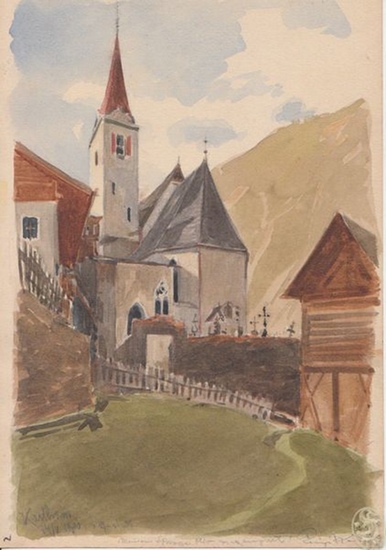 Karthause. [ca. 1900]. Orig.-Aquarell. 24, 5 x 16, 5 cm. Schüttler, Wien 1944; vgl. Thieme-B. XIX, 582f.; Antiquitäten-Rundschau 23. Jg. 1925, Nr. 24 - A. d. Rückseite eine Orig.-Bleistiftzeichnung Kasimirs.