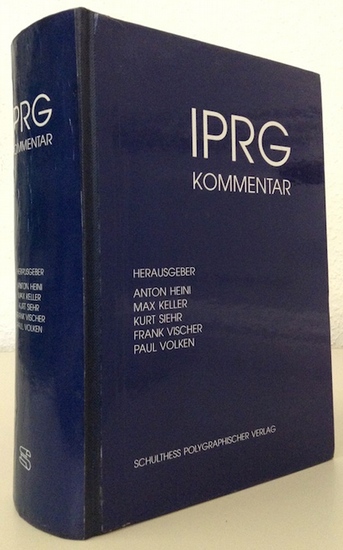 IPRG Kommentar. Kommentar zum Bundesgesetz über das Internationale Privatrecht (IPRG) vom 1. Januar 1989. Zürich, Schulthess, 1993. XXIII, 1718 S. OPpbd. (Rücken in Leinen erneuert). Wenige Anmerkungen u. Unterstreichungen in Bleistift. Vorn ein Widmungsbl. der 3 genannten Herausgeber eingeheftet.