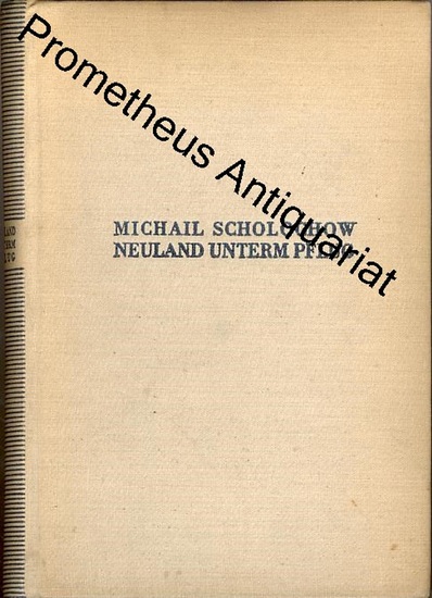 Neuland unterm Pflug. Roman. Ring-Verlag, Zürich., 1933. 466 S. 8°, OLn. 1. Auflage, parallel zu der der VEGAAR in Moskau, dort aber laut Schick (404) erst 1934 erschienen. Wurde demnach auch vom Malik-Verlag ausgeliefert. Gedruckt aber in Oslo. Übersetzung von Eduard Schiemann, unter Redaktion von Herwarth Walden. (Eine andere Übersetzung, von Boris Krotkow und G. S. Stoessler, erschien praktisch zeitgleich in der Büchergilde Gutenberg in Zürich usw.). Etwas schief gelesen, leicht angestaubt / gebräunt / gebrauchsspurig, Vorsatz mit priv. Besitzvermerk in Bleistift, letzte Textseite unten mit Ausriss (ca. 4 Zentimeter hoch), aber wohl ohne Textverlust. Ordentliches Exemplar, keine Ruine.