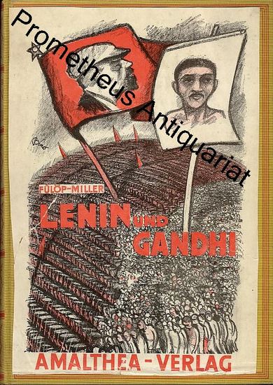 Lenin und Gandhi. Amalthea-Verlag, Wien - Leipzig - Zürich., 1928. 305 S. + 60 S. Tafelteil. Gr. 8°, OLn. 4. - 5. Tsd (EA 1927). Mit 109 Abbildungen, zumeist im Tafelteil, auf besserem Papier. Fülöp-Müller (1891 - 1963) kam aus einem entfernten Eckchen Österreich-Ungarns (heute Rumänien), war Soziologe, Romancier, Journalist u.a. Er lebte an diversen Orten in Europa, ab 1939 im Exil in den USA. Ein merkwürdiger Denker, und wohl kein Linker. In diesem Buch versucht er an Hand der in seinen Augen für die Zeit bezeichnenden Figuren den 'Geist der Gegenwart' zu fassen zu kriegen. Gedruckt in Wien, schönes Buch. Vorderdeckel mit Webfehler, im vorderen Innengelenk auf ein paar Zentimetern eingerissen, im Ganzen ein sauberes Exemplar. Beigegeben die nur etwas beschnittene Vorderseite des Schutzumschlages.