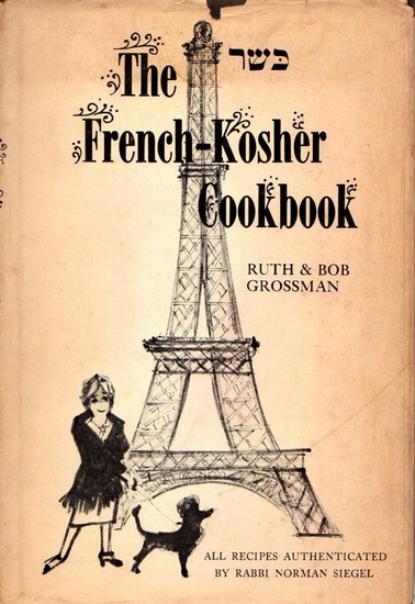 The French-Kosher Cookbook. All recipes authenticated by Rabbi Norman Siegel. N.Y., Paul S. Eriksson, Inc., (1964). 8vo, X, 82 pag. with illustr. and index, hardcover with illustr. dustjacket, this is partly split and chipped; else a nice copy!. First edition with illustrations by Arouni.