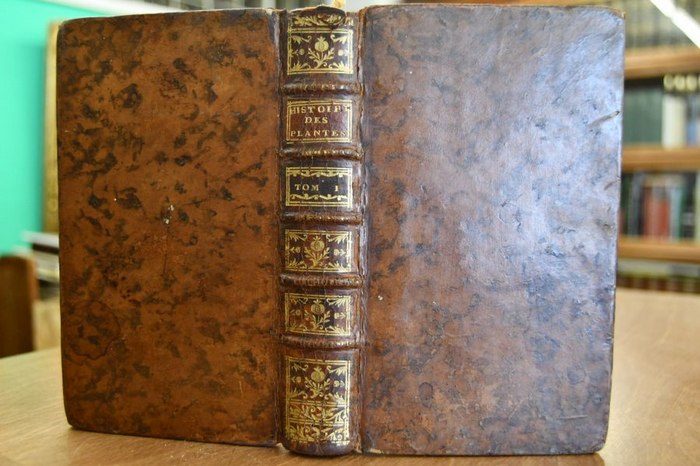 Histoire des plantes de l`Europe, et des plus usitées qui viennent d`Asie, d`Afrique & d`Amerique. : Où l`on voit leurs figures, leurs noms, en quel temps elles fleurissent, & le lieu où elles cruissent. : Avec un abrégé de leurs qualités & de leurs vertus spécifiques. ; Divisée en deux tomes, & rangée suivant l`ordre du Pinax de Gaspard Bauhin. Tome Premier (apart). Lyon, Duplain, 1766. XXXVI, 442 S. mit Ill. 18 x 11 cm, Leder der Zeit mit 5 Bünden, Rückenschild und -vergoldung sowie umlaufendem, marmoriertem Schnitt. Einband b erieben und bestoßen.Das Vorwort feuchtigkeitsrandig. Einige Seiten eselsohrig.