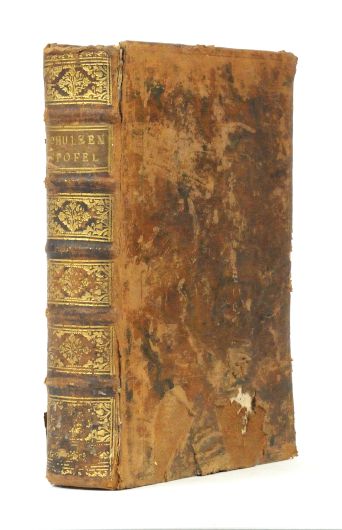 Des Schulzen Stofels sein Büchlein wider Herrn Doctor Lochstein, im Puncte der geistlichen Immunität und Freyheit, ebendemselben zu einem geistlichen, ann. 1767. zugesetzten, und in diesem Jahre ausgesottenen Osterey von sieben Dottern als so vielen Kapiteln verehrt von einem Alt-Deutschen wahren Verehrer des Geboths Christi [...]. Ohne Ort (Augsburg), ohne Verlag bzw. Drucker, 1768. 4°. 302 nn. Bll., Ldr. d. Zt. m. reicher Rückenverg., goldgepr. Rückenschild u. dreiseitigem Rotschnitt. Erstausgabe dieses anonym erschienenen Werks, das sich mit den Rechten der katholischen Kirche und der Immunität derer Geistlichen beschäftigt. - Das KVK gibt mehrfach irrig 304 Blätter an. Da die Lage A jedoch nur zwei Blätter umfasst (die Kustode und auch der Text von Bl. A2v stimmen mit B1r überein) sind es richtig nur 302 Blätter. - Einband beschabt u. bestoßen (Vorderdeckel im unteren Drittel m. Bezugsfehlstellen). Rückenkanten angebrochen. Vorsatz- u. Titelbll. gestempelt. Tlw. Knickspuren. Gebräunt u. stock- bzw. braunfleckig.