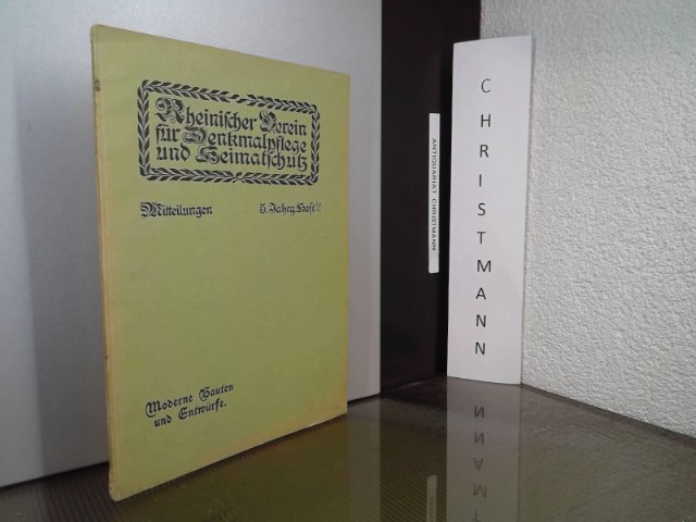 Mitteilungen des Rheinischen Vereins für Denkmalpflege und Heimatschutz. Fünfter Jahrgang Heft 2 1911 Moderne Bauten und Entwürfe Düsseldorf, L. Schwann Verlag, 1911 1911. Seite 144 bis 175 Broschiert, Exemplar in gutem Erhaltungszustand. Moderne Bauten und Entwürfe. Vorwort (Hunsrückdorfkirche in Kisselbach, Moselkirche, Kirchenumbau in Pluwig (Kreis Trier), Kirche in L., Rektoratsschule für Gangelt, Niederrheinisches Backsteinhaus für einen Maler in Kaiserswerth, Entwurf für eine Sommerwirtschaft in Eller, Wettbewerb für die Kreissparkasse mit Kreisausschussgebäude in Wetzlar, Auszug aus dem Preisausschreiben zur Förderung bergischer Bauweise, Fassadenentwürfe in bergischer Bauweise) - Pfalz +++++ 30 Jahre Antiquariat Christmann in Wiesbaden +++++ Wir liefern außer nach Deutschland, nur noch nach Schweiz / Holland / Belgien / Italien / GB / USA / +++ We now only deliver to Switzerland / Holland and Belgium / Italy / GB / USA +++ Keine Lieferung nach Österreich ++++.