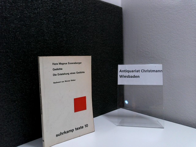 Gedichte : Die Entstehung eines Gedichts. Nachw. v. Werner Weber / Suhrkamp-Texte ; 10 1.-5. Tsd. - Erstausgabe WG II / 10 Frankfurt a. M. : Suhrkamp 1962. 59 S. ; 8° Broschiert, Seiten alters- und papierbedingt gebräunt, sonst guter Zustand. R-Enzensberger +++++ 30 Jahre Antiquariat Christmann in Wiesbaden +++++ Wir liefern außer nach Deutschland, nur noch nach Schweiz / Holland / Belgien / Italien / GB / USA / +++ We now only deliver to Switzerland / Holland and Belgium / Italy / GB / USA +++ Keine Lieferung nach Österreich ++++.