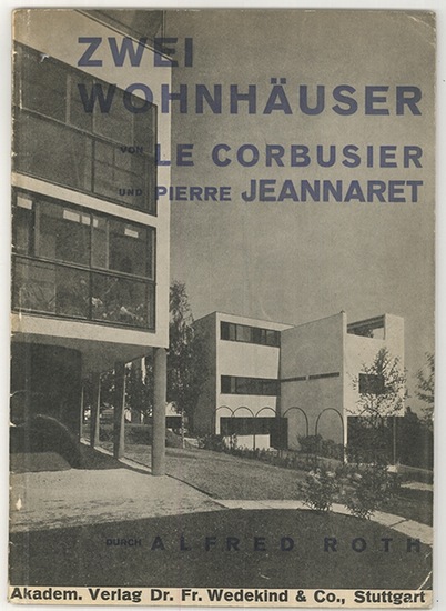 Zwei Wohnhäuser von Le Corbusier und Perre Jeanneret. Fünf Punkte zu einer neuen Architektur. Geleitw. v. Hans Hildebrandt. Stgt., Wedekind & Co. 1927. 4°. Tit., 47 S. Mit Abb., 2 gefalt. Pläne. OKart. ill. Kanten berieb. Namenszug am Tit. EA.