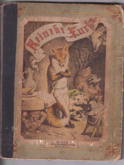 Reineke Fuchs. Für Jung und Alt neu bearbeitet. Leipzig, Alfred Oehmigke [Moritz Geißler], o.J.[1874]. Halbleinen, Illustrierte Deckel, Lex-8°, 155 S., 8 ganzseitige, farbige Illustrationen auf Tafeln sowie alsTitelillustration, 2 farbige Deckelillustrationen; -Rücken geklebt, Bindung z.T. einfach restauriert, berieben und gebräunt, etwas lädiertes, aber vollständiges und festes Exemplar.