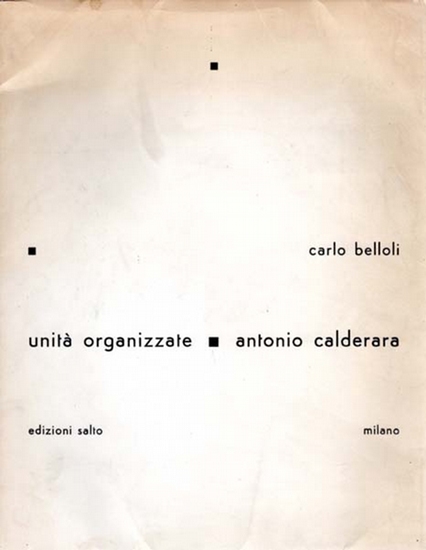 Unita organizzate. De Carlo Belloli. Milano., Edizioni Salto., 1961. 34 x 27 cm. 44 unpaginierte S. Fransösiche Broschur / OKarton mit eingeschlagenem OUmschlag., 239F. Der Umschlag in den Rändern stärker gebräunt, etwas angestaubt bzw. fingerfleckig. Innen sehr gutes, insgesamt ordentliches Exemplar. Frühe werkmonographsiche Publikation über Calderara mit einem Text von Carlo Belloli in Italienisch, Französisch, Deutsch und Englisch. Mit 9 ganzseitigen, fotolitographischen Tafeln von Arbeiten Calderaras aus den Jahren 1960 und 1961.