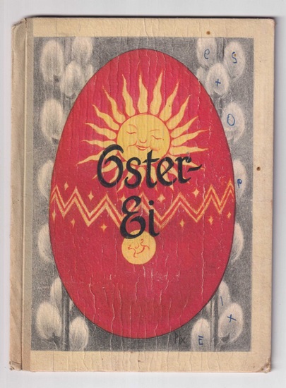 Oster-Ei für unsere Kleinen. Altenburg, Richard Hauenstein, [1947]. Pappeinband, gr-8°, 10 Bl, durchgehend farbig illustriert; -berieben und gebräunt, einige Kritzeleien auf dem hinteren Deckel, gutes Exemplar.