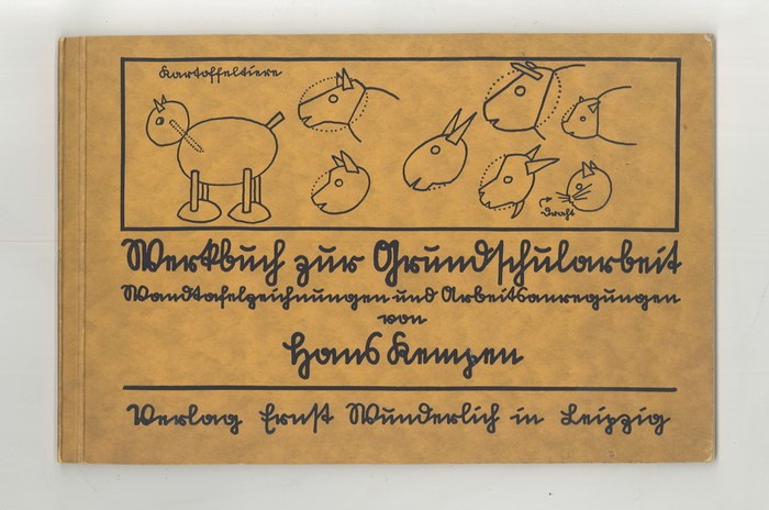 Werkbuch zur Grundschularbeit. Wandtafelzeichnungen und Arbeitsanregungen. Leipzig, Ernst Wunderlich 1938. Erstes bis viertes Tausend. Quer-8°. XII, 42 S., 1 Bl. (Verlagsanzeigen). OKart. Einband mit minimalen Gebrauchsspuren, innen tadellos erhalten. EA. Fast durchgehend in Sütterlin gedrucktes Buch mit Handwerks- und Bastelanleitungen für den Grundschulunterricht. Mit beiliegender Verlagswerbung (1 kl. Faltblatt).